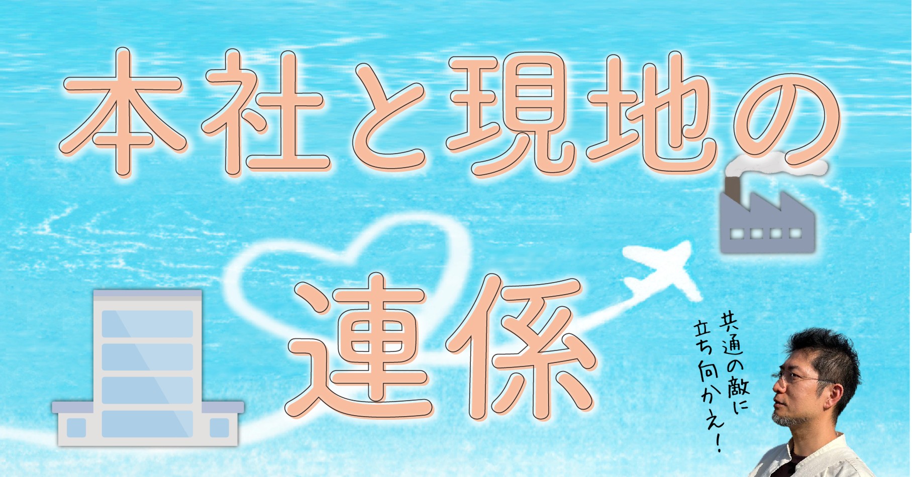 現地側の人は全員、いちどは「事件は会議室で起きてるんじゃない」(古いネタで恐縮です)と思ったことがあるはずです。本社は現地の実情を理解していますか。現地に足を運んでますか。シビアな状況になったら陣中見舞いに行ってますか。