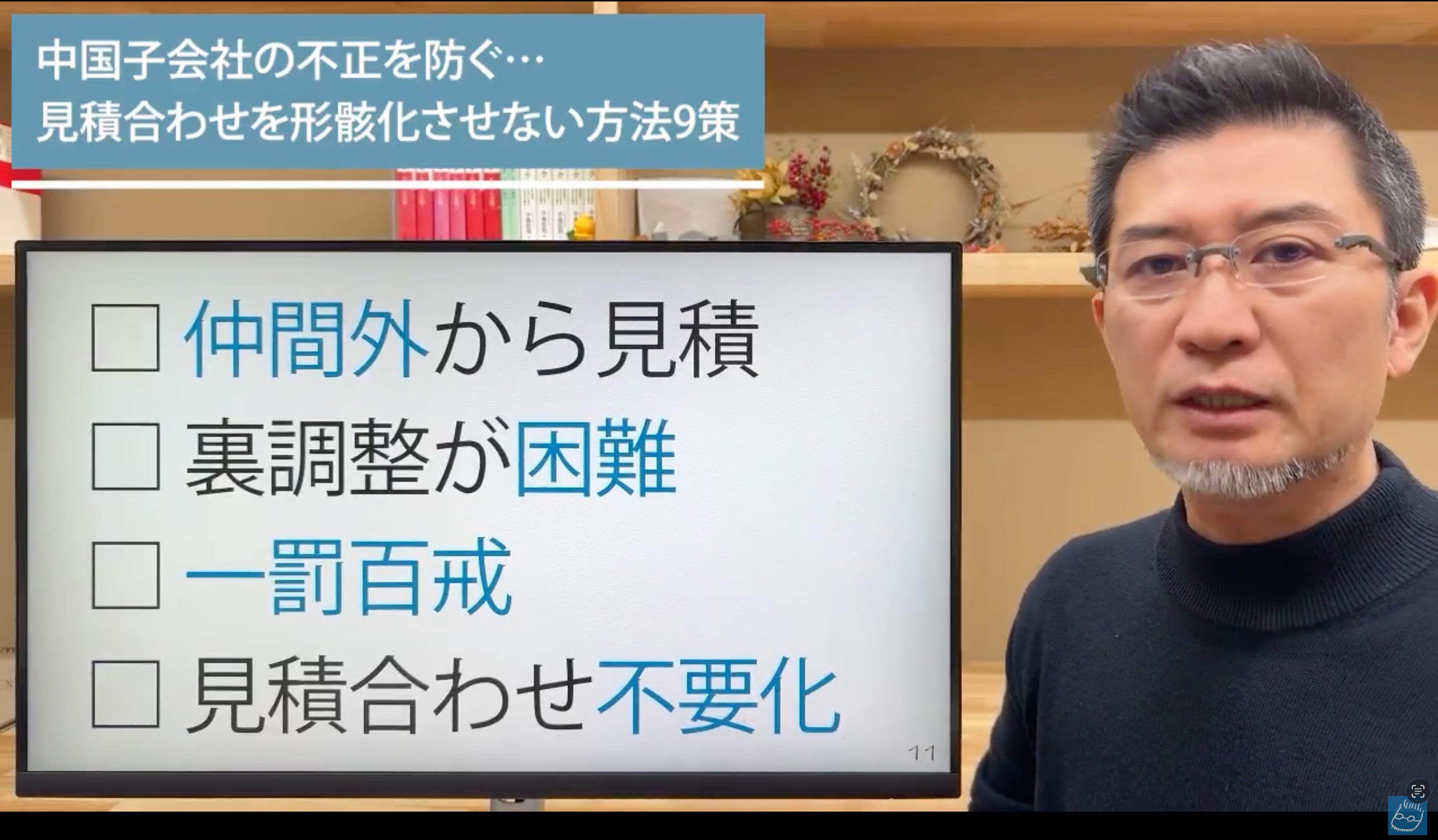 客先指定ではなく(客先指定はむしろ不正の余地が少ない)、代替可能ではあるけれど、どこからでも調達できるわけではない領域は不正が起きやすいので、あらかじめ理解した上で、常にアンテナを張っていることが必要です。これは普段からやっていないと、怪しいと思っても「代替できません」と足元を見られます。